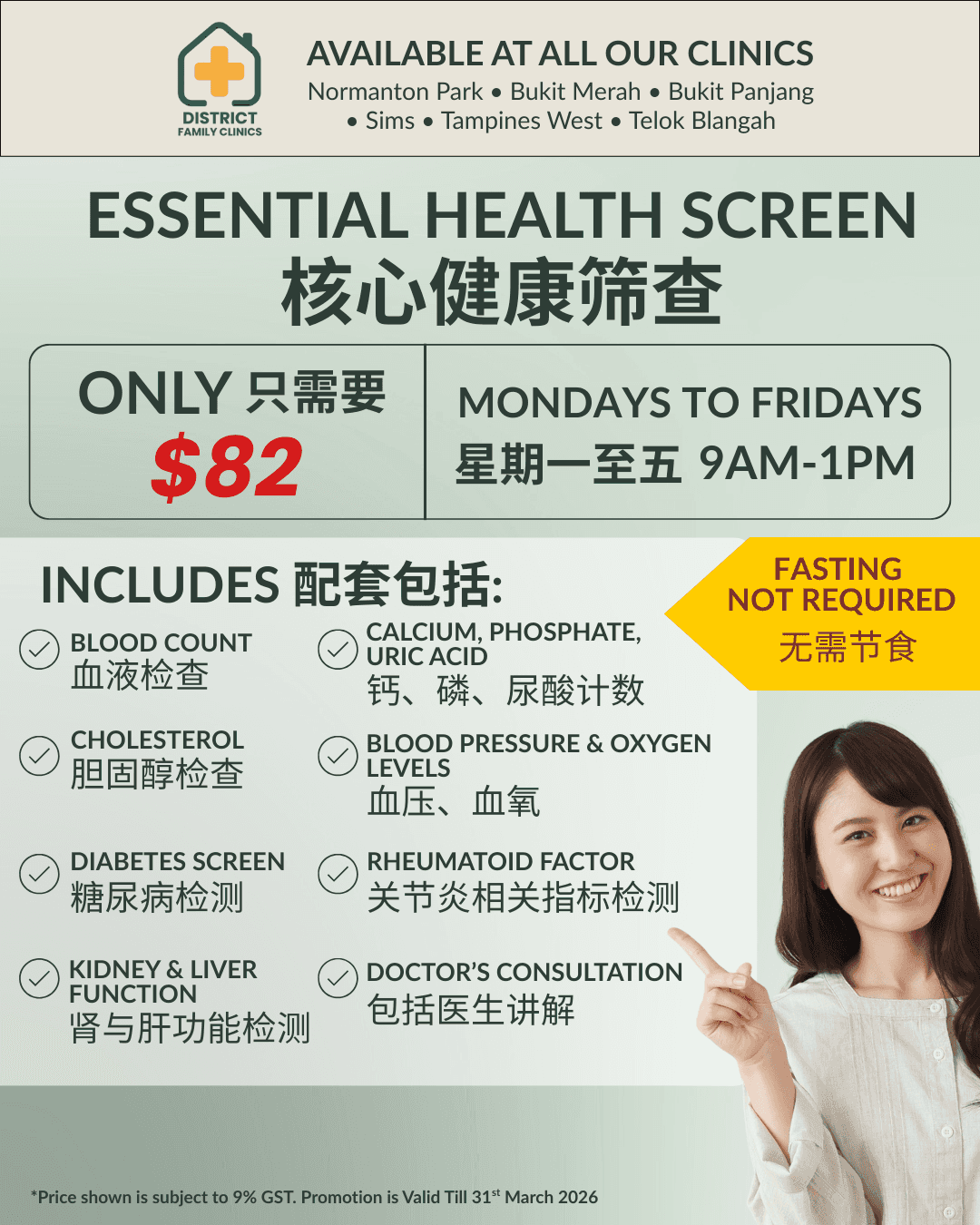 Available Monday to Friday, 9am–1pm only, at all District Family Clinics.
